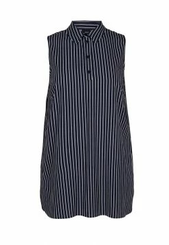 Zizzi ÄRMELLOSE AUS MIT KRAGEN – Débardeur – Blue White Stripe