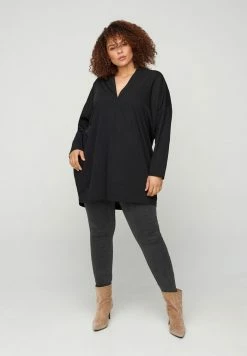 Zizzi CHECKERED WITH 3/4-LENGTH SLEEVES – Tunique – Black White Check