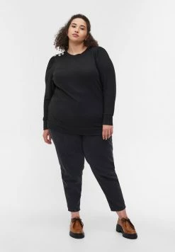 Zizzi PRINTED WITH LONG SLEEVES AND SMOCKING – Blouse – Black Oriental