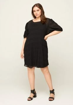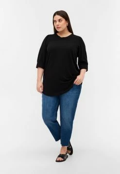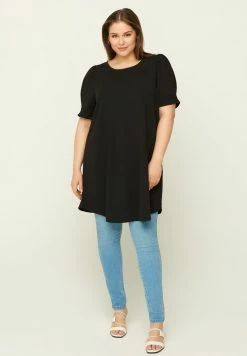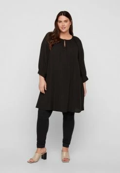 Zizzi TUNIKA MIT PUNKTEN UND BINDEBAND AN DER TAILLE – Blouse – Brown